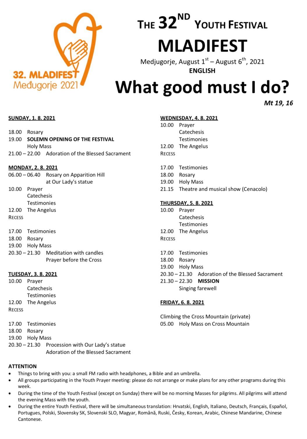 This year too there will be huge praying program, touching testimonies of people who converted to God and whose spiritual growth was inspired by Medjugorje, magnificent processions where we will celebrate Our Lord and our communion in christianity.